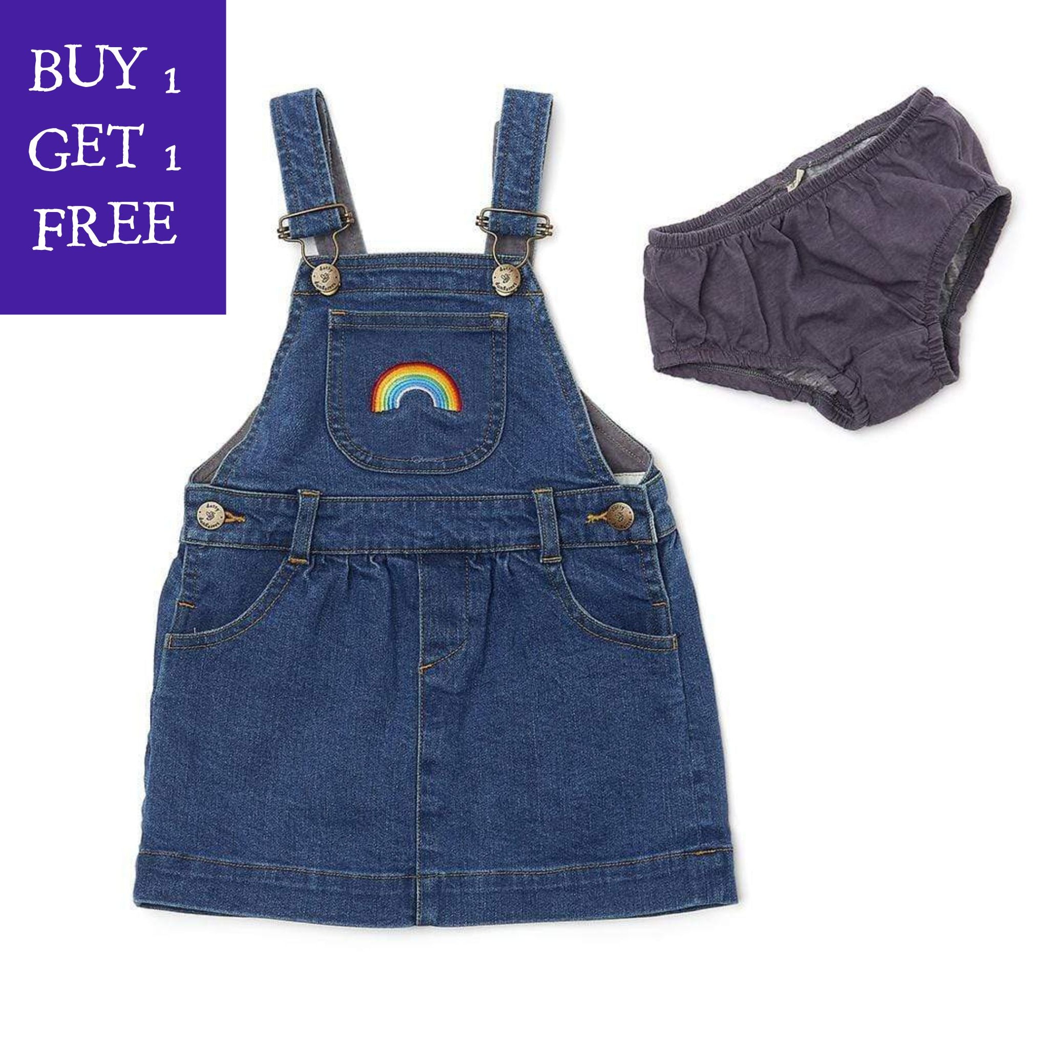 The denim is super comfy yet durable as it has a tiny bit of stretch (99.8% cotton, 0.2% elastane) which makes it perfect from babies crawling to children climbing trees. Dotty details include adjustable straps, bespoke buttons, signature 100% cotton jersey lining and adorable matching knickers up to 2-3y.